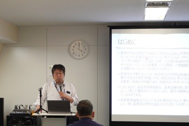 獨協医科大学教学IRセンターの組織的位置づけ、実際の調査活動(事例として外部テスト、卒業生調査)、調査結果の分析・提案・情報提供の流れについての説明のあと、教学IRデータから教育改善につなげた事例の紹介がありました。