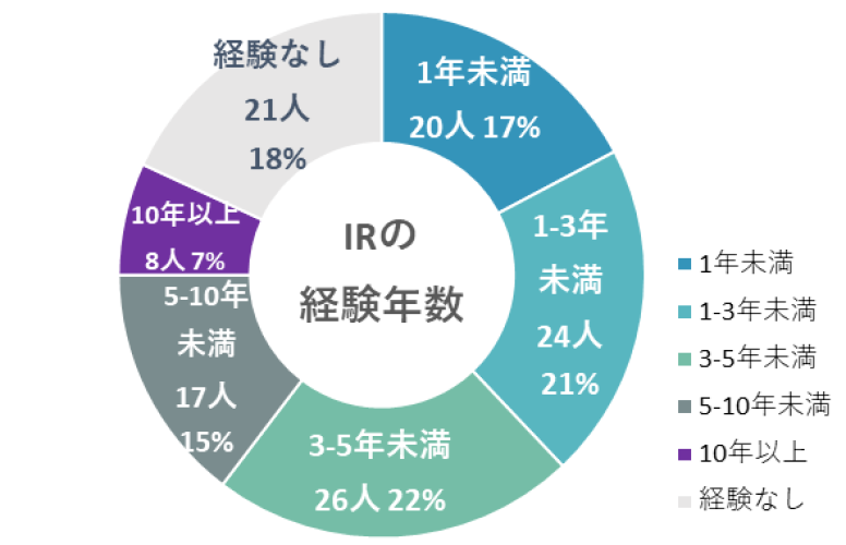 ※不明1名、主催・スタッフ2名除く 116名 割合の多い順に「3-5年未満」22%、「1-3年未満」21%、「経験なし」18%、 「1年未満」17%で、5年以上と回答した参加者は22%でした。