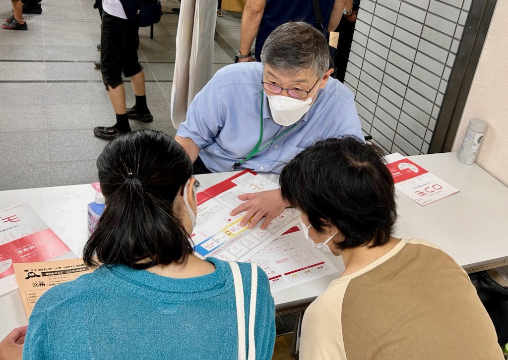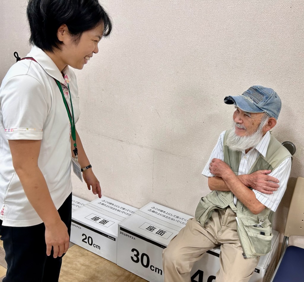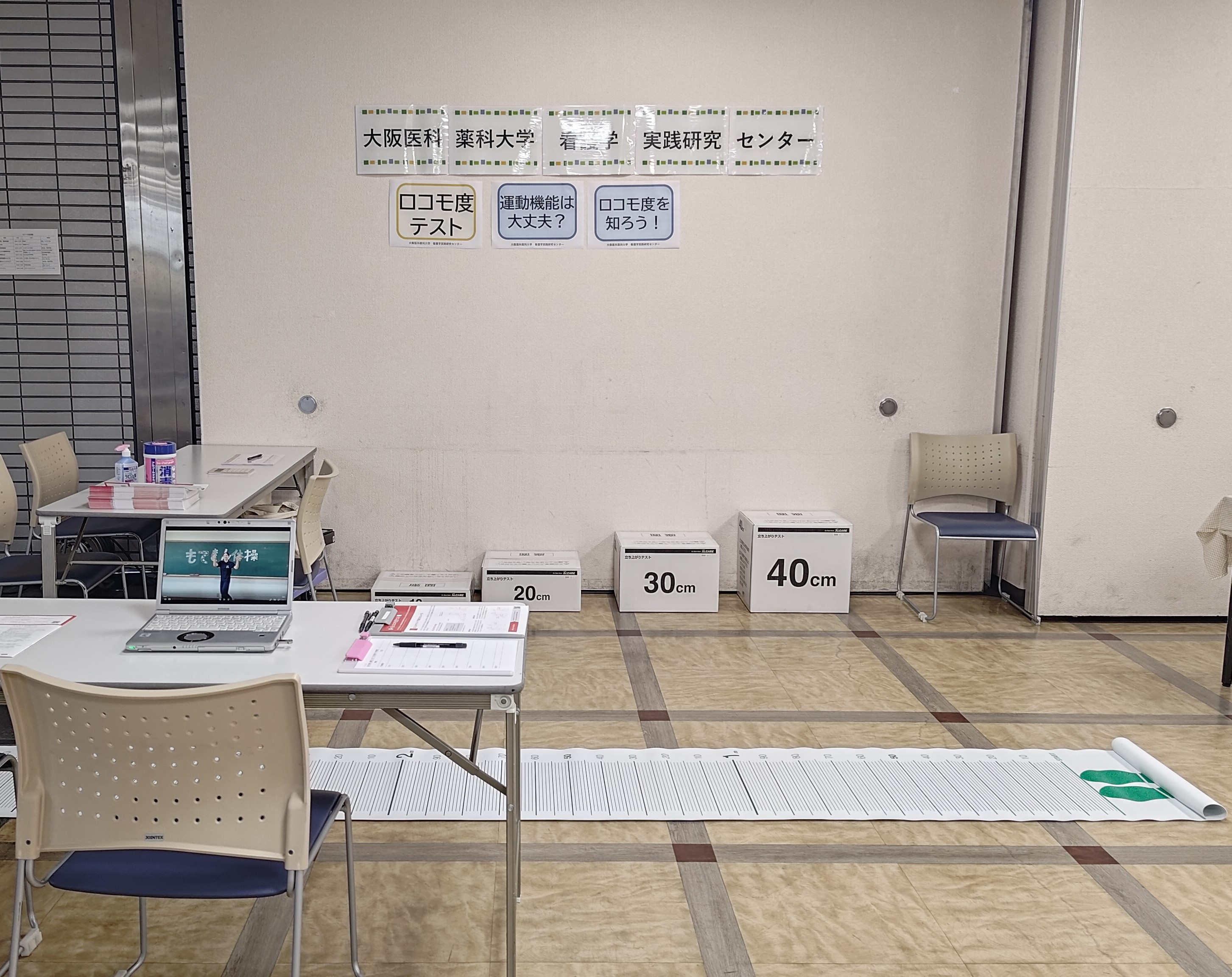 大阪医科薬科大学 看護学部 看護学実践研究センターは、看護学部の地域貢献活動の一環として、2025年9月14日(日)に高槻市生涯学習支援センターで開催された 「第21回 たかつきNPO協働フェスタ」 に参加しました。テーマは 昨年に引き続き「運動機能は大丈夫?ロコモ度を知ろう!」 でした。「ロコモ度」のロコモ(ロコモティブシンドローム)」は、背骨や関節の障害などにより「立つ」「歩く」といった移動機能が低下した状態を指し、その低下の程度の指標がロコモ度です。ブースでは 「立ち上がりテスト」(写真1奥、写真2) と「2ステップテスト」(写真1手前)およびロコモ25(ロコモ度のアンケート) について、飛田伊都子センター長を含み5名が担当し、47名 の市民の皆様を測定させて頂きました、。結果の説明は、ロコモアドバイスドクター(ロコモの正しい知識と予防意識の啓発のための活動を行う)の日本整形外科学会専門医 安田稔人教授(写真3)が担当し、ご参加いただいた方々の健康づくりをサポートしました。今後とも地域の健康づくりに貢献できるように努めてまいります。