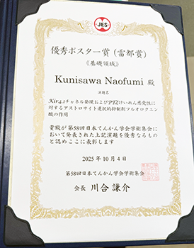 薬学部の國澤直史助教が一般社団法人日本てんかん学会主催の第58回日本てんかん学会学術集会において優秀ポスター賞を受賞しました。