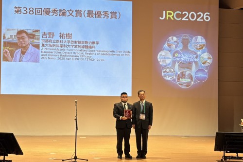 2026年4月16日~19日に横浜市で開催された第85回 日本医学放射線学会総会において、医学部 放射線腫瘍学教室 吉野 祐樹 助教が、日本医学放射線学会 第38回優秀論文賞(最優秀賞)を受賞しました。