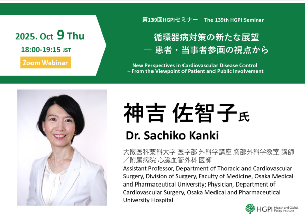 第139回HGPIセミナー「循環器病対策の新たな展望 — 患者・当事者参画の視点から」
