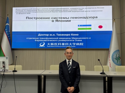 2月13日、ウズベキスタン共和国タシケント市内の共和国血液専門医療センターにて、大阪医科薬科大学病院輸血室の河野 武弘 室長が教育講演「Building a Haemovigilance System in Japan」を行いました。