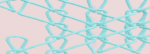 最初:吸収性の糸(紫色)と非吸収性の糸(水色)が編み上がった状態