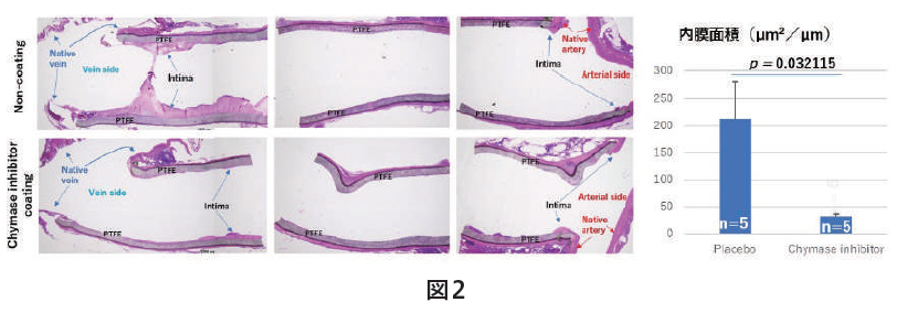 - 内膜肥厚形成に対するキマーゼ阻害薬コーテイン人工血管の抑制効果の検証