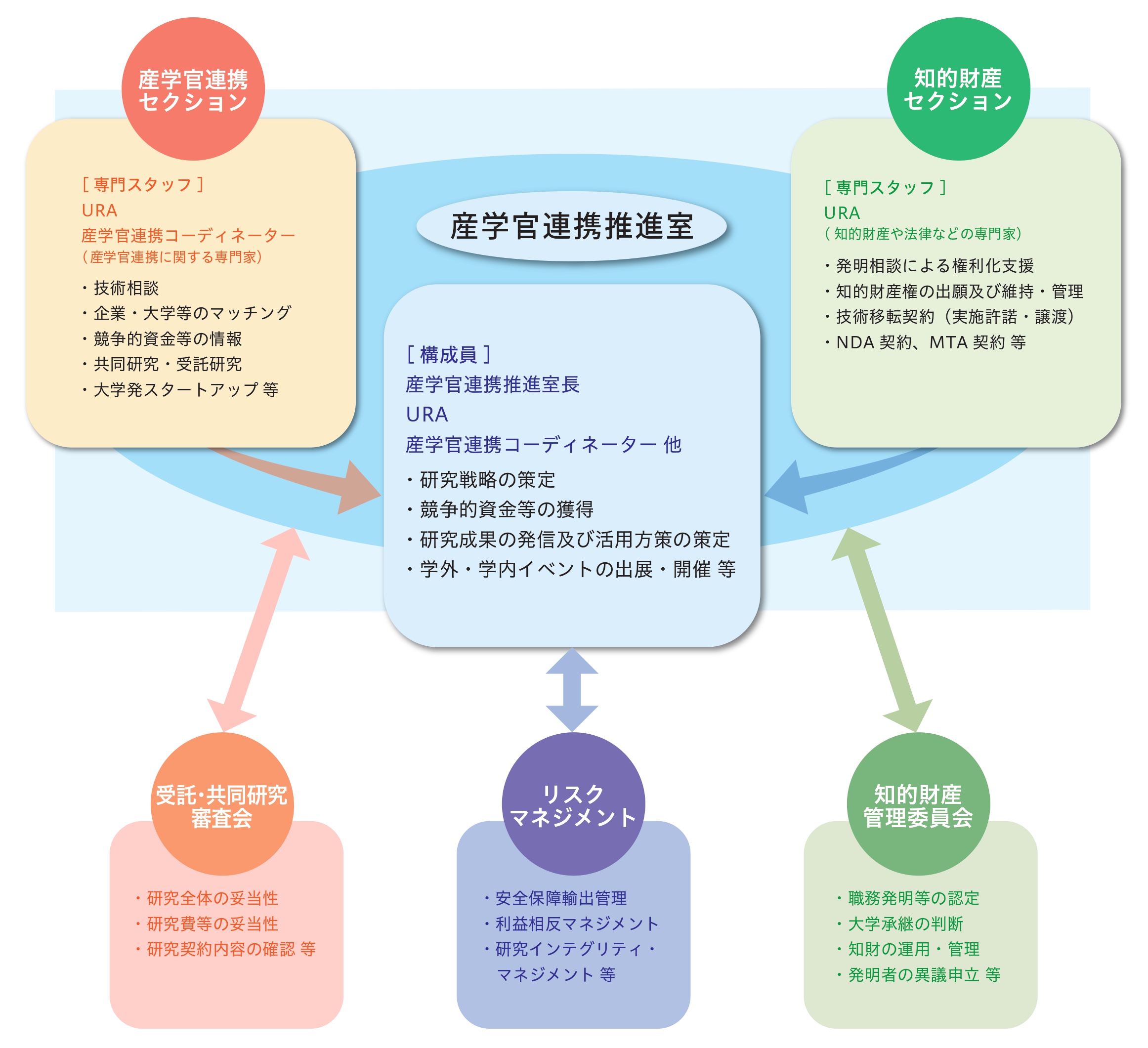 ①情報の収集・提供・発信 ②技術移転の促進 ③共同研究の企画運営