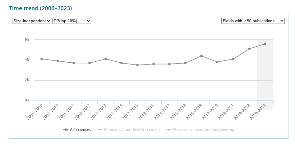 ここでは各大学のPP (top 10%)を誰でも簡単に検索できるLeiden Rankingを紹介しています。