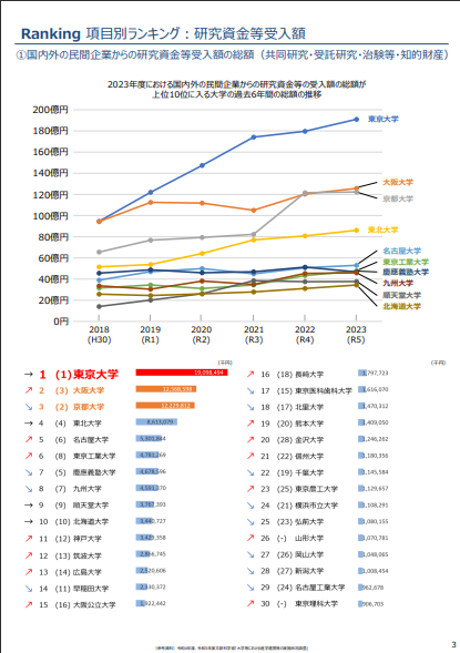 経済産業省・文部科学省・日本経済団体連合会(経団連)が共同で毎年公表しており、企業や大学が産学官連携を効果的に進めるための基礎資料として活用されています。