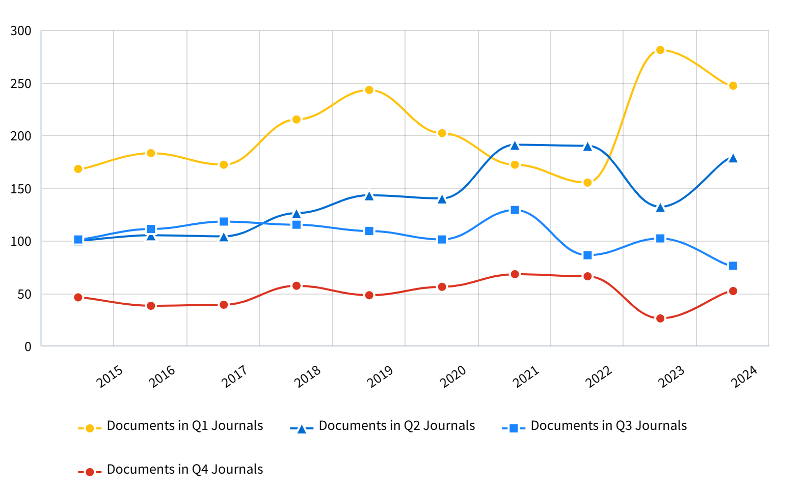 出版数の内訳Documents Published per JIF Quartile per Year Q1ジャーナル(Q1誌)