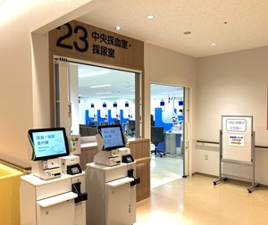 ・新型コロナ感染予防対策として受付時の混雑(密)を避けるため、受付順番券を廃止し、午前7時30分から随時受付をしております。採血は午前8時から開始いたします。なお、尿検査は受付後提出可能です。