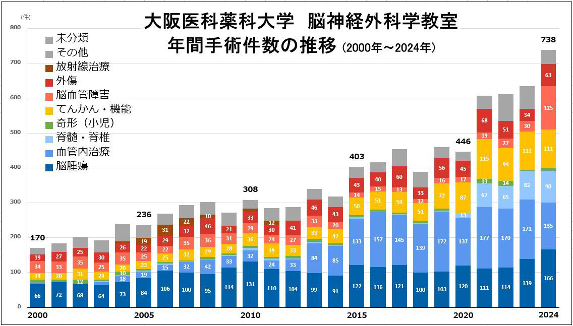 | 年間手術件数 | 318 | 403 | 416 | 453 | 389 | 459 | 446 | 607 | 611 | 635 | 738 |