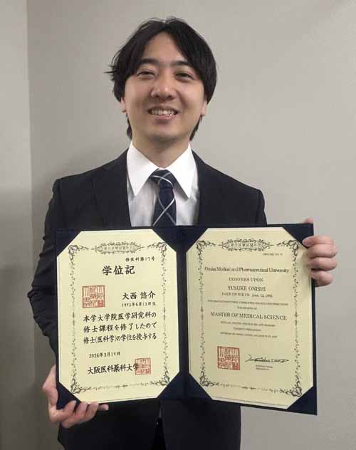 当教室からは大学院生 大西技師が学位(修士)の学位記を授与されました。